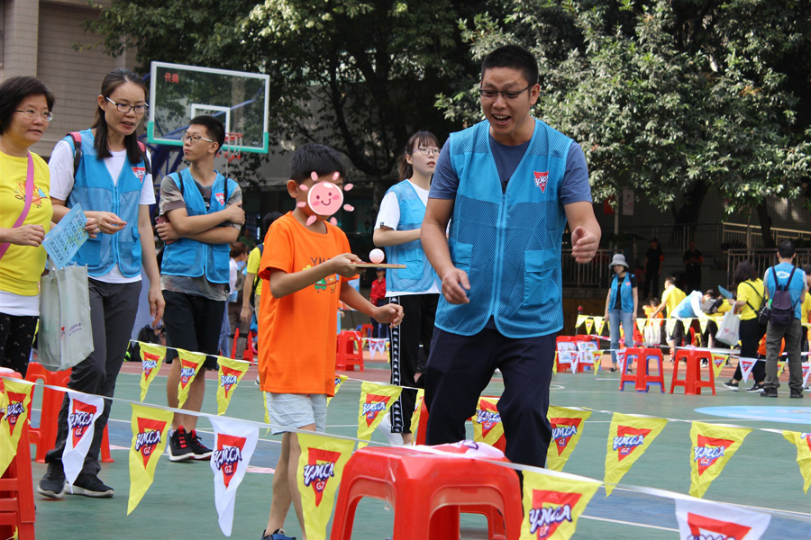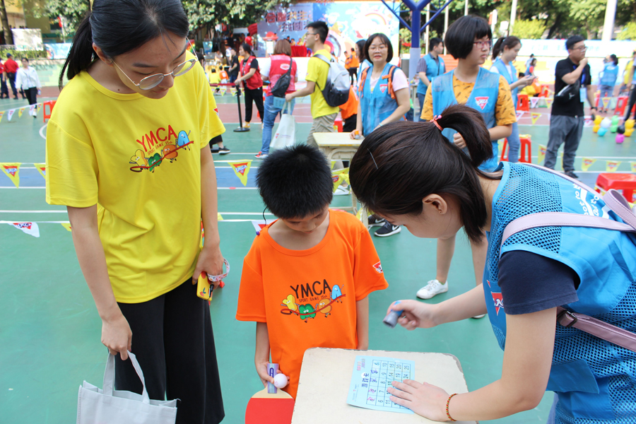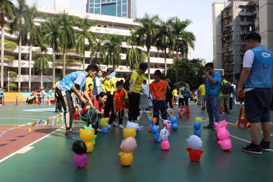 在運(yùn)動(dòng)會(huì)上,倍爾康的義工們參與負(fù)責(zé)的游戲項(xiàng)目是——快樂(lè)乒乒乓乓。