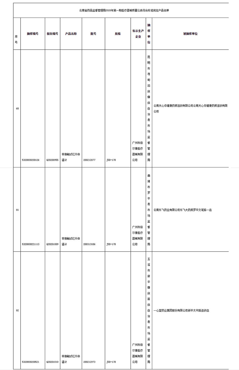 日前,云南省藥品監(jiān)督管理局發(fā)布2020年第一期醫(yī)療器械質(zhì)量公告,倍爾康的非接觸式紅外體溫計(jì)JXB-178被抽樣檢查,并順利通過質(zhì)量監(jiān)督!