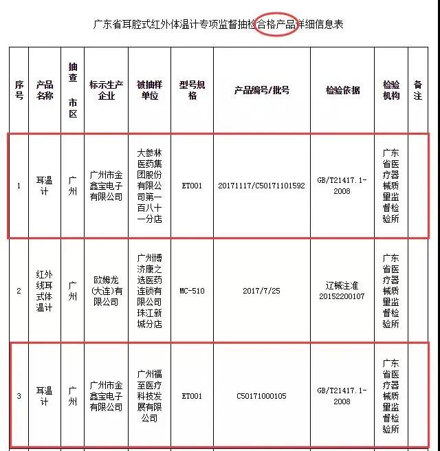 2019年的5月, 廣東省藥監(jiān)局對(duì)市場(chǎng)上的醫(yī)療器械產(chǎn)品進(jìn)行抽查,倍爾康耳溫計(jì)ET001也在合格名單上!