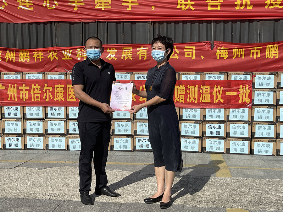 圖片2021年6月向廣州番禺捐贈體溫計,左1為郭智超先生