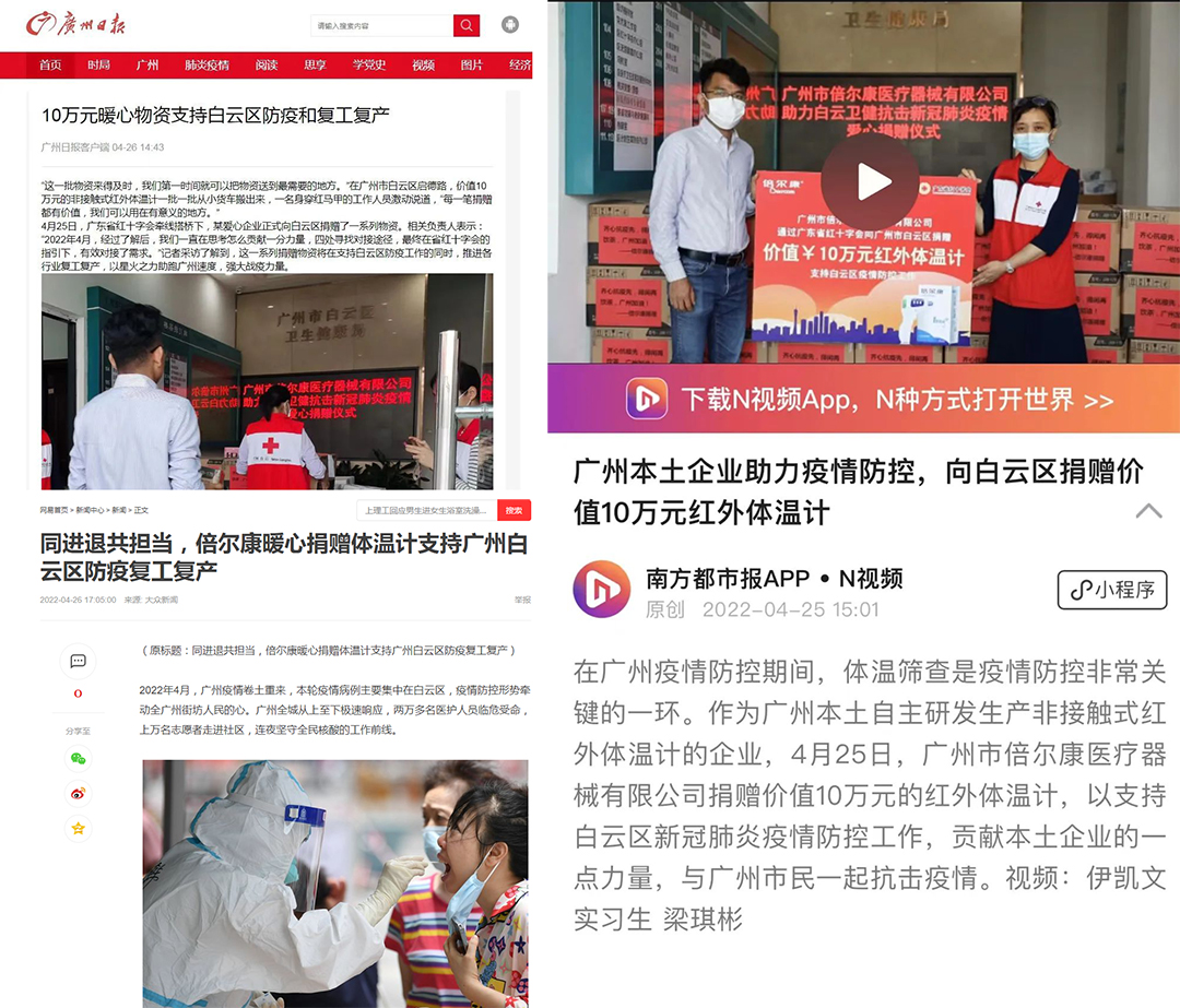 4月25日,倍爾康通過廣東省紅十字會向廣州市白云區(qū)捐贈防疫物資(價值人民幣十萬元整),支援白云區(qū)新冠肺炎疫情防控工作,以星火之力與廣州同心抗疫,共克時艱。