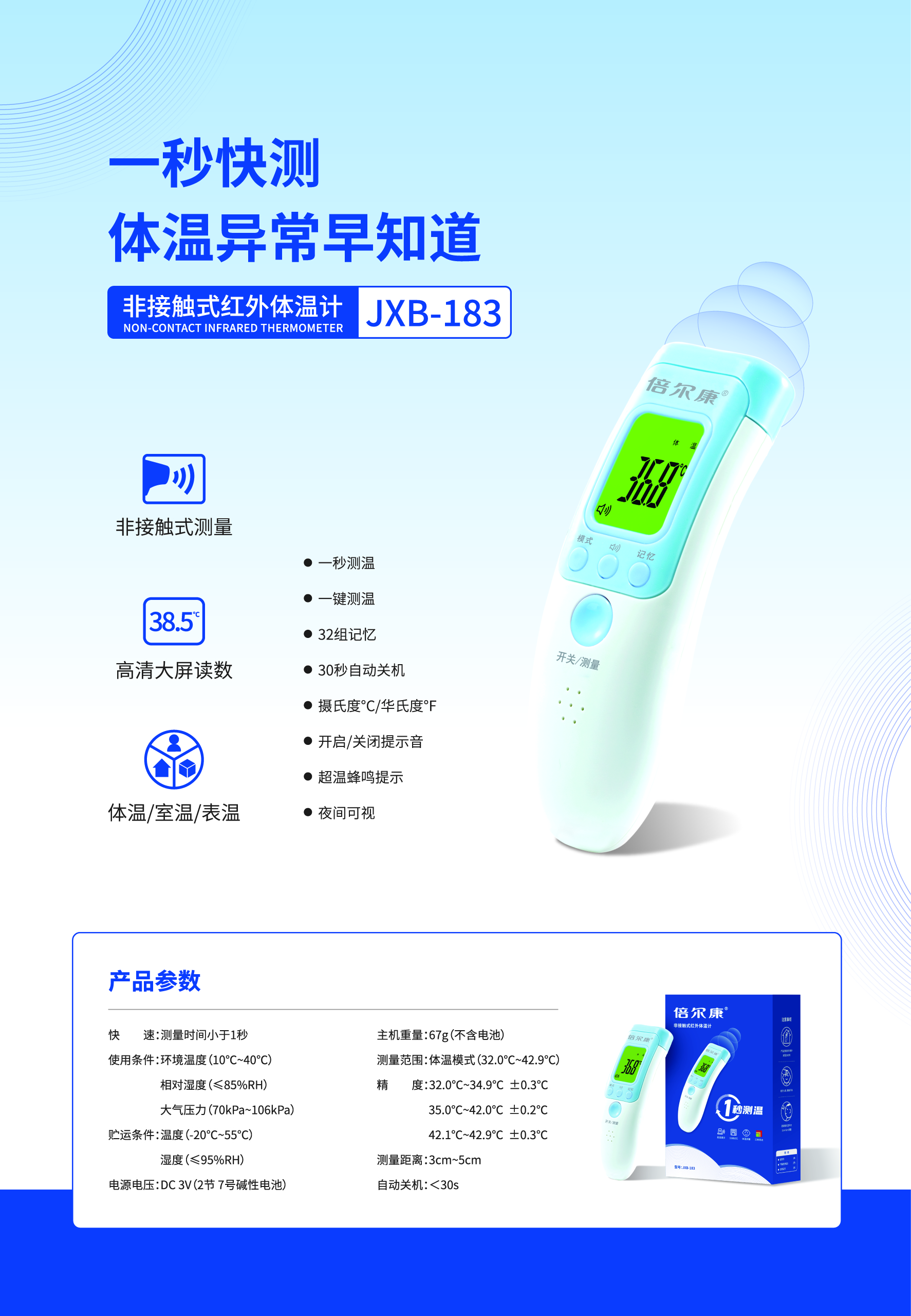 非接觸式紅外體溫計 JXB-183